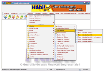Crie e consulte relatórios sobre qualquer item sem se perder na papelada. O Hábil Empresarial inclui vários utilitários que deixam mais fácil o gerenciamento do negócio. Importe e exporte relatórios, envie recados, consulte o CEP, use calculadora, agende compromissos... Faça isso todo sem sair do Hábil Empresarial.